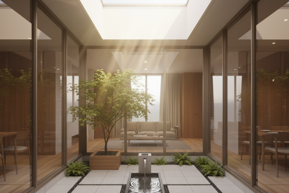 Fungsi: taman, teras hijau, atau inner court terbuka.
